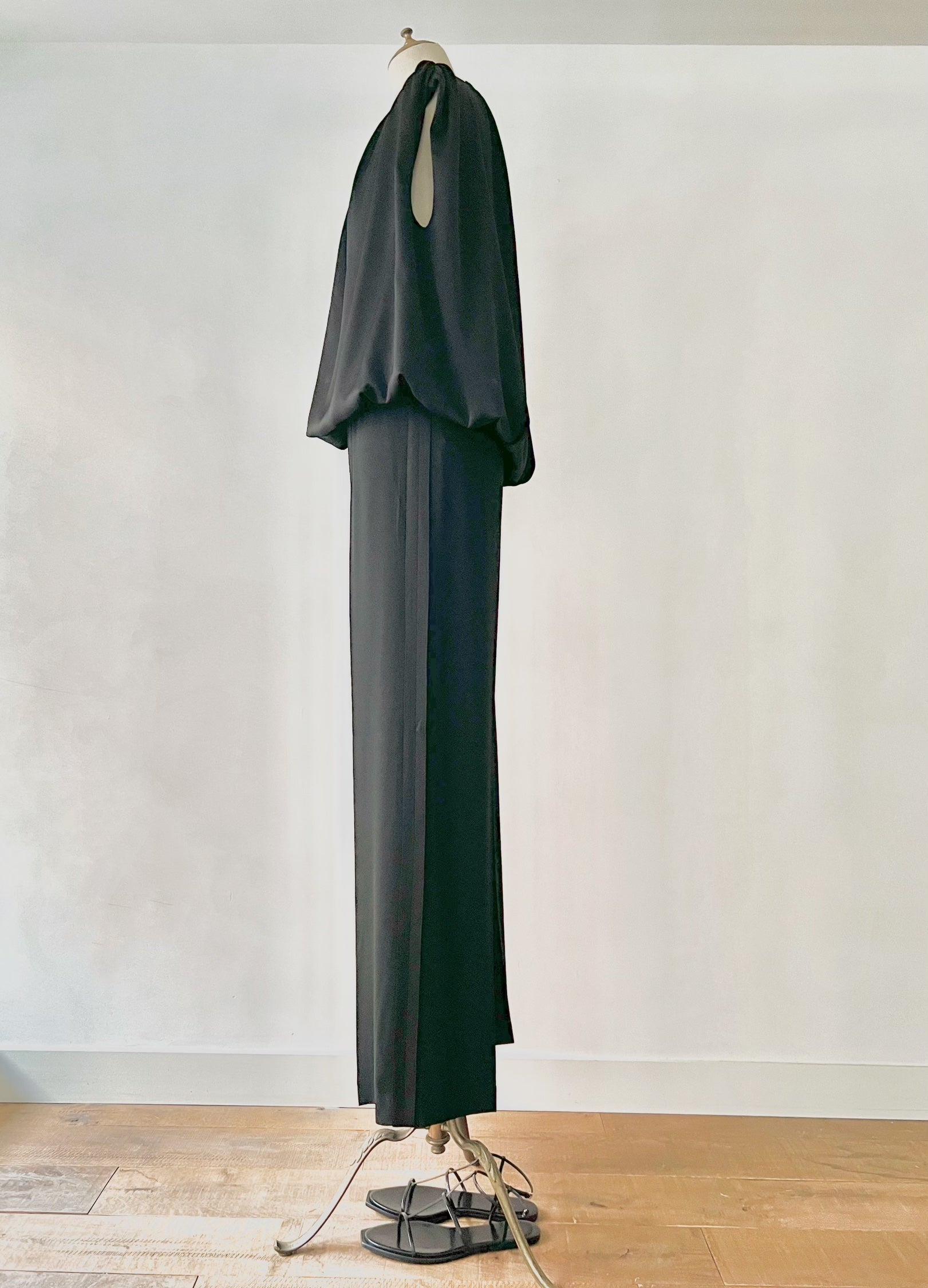 裏地があって可能となるバルーン&ギャザーのシルエットのデザインとなります。