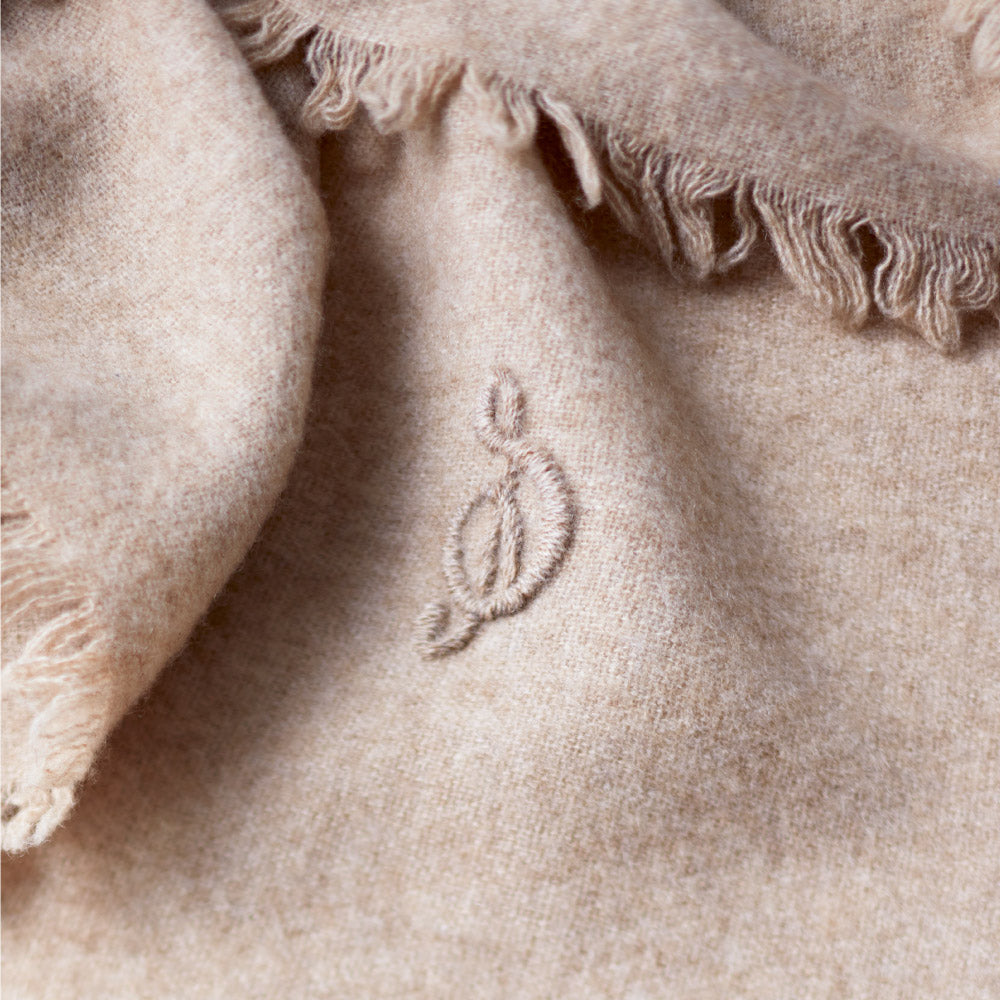 A large-format stole that luxuriously uses high-quality Inner Mongolia cashmere, which is characterized by its soft and soft texture. In Izumiotsu, Osaka, the largest blanket producing area in Japan, brushing specialists are called brushers. The skillful craftsmanship of the brushers has created this superbly soft cashmere stall. The special piece, which was created without any hassle, is not only good in appearance but also in warmth. In addition, you can add 1 or 2 initial hand embroidery in cursive as an option (charge not included).