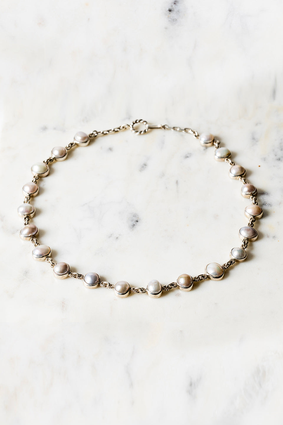 さらにそれらを繋ぐジョイントにも細かな細工を施し、その全てを特別な手仕事で仕上げたスペシャルなパールネックレス。